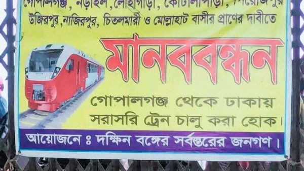 গোপালগঞ্জ-ঢাকা সরাসরি ট্রেন চালুর দাবিতে মানববন্ধন
