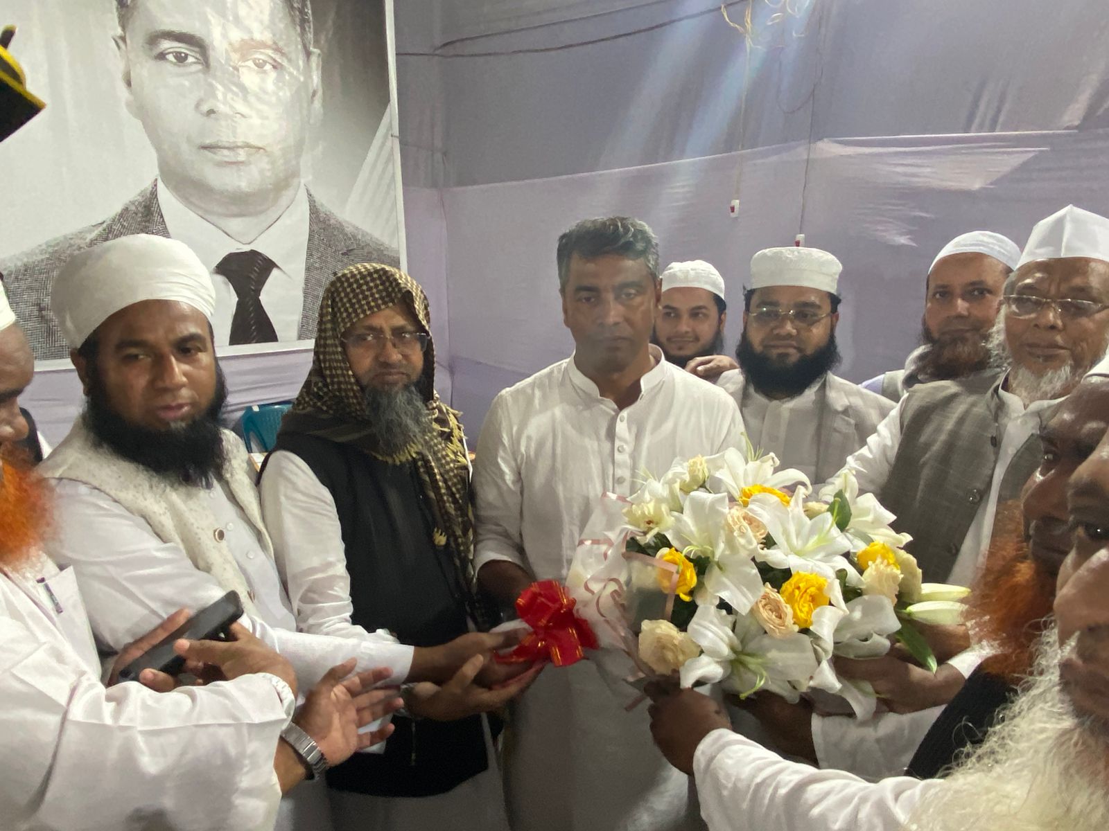 এ সময় উপস্থিত ছিলেন পরিষদের সভাপতি নাজমুল হাসান কাসেমী দামাত বারকাতুহুম, নির্বাহী সভাপতি হেফায়েতুল্লাহ আজহারী দামাত বারকাতুহুম সহ-সভাপতি আল্লামা আনিসুর রহমান দামাত বারকাতুহুম সহ অন্যান্য নেতৃবৃন্দ। তারা নবনির্বাচিত সংসদ সদস্যের সফলতা কামনা করেন এবং এলাকার উন্নয়নে পাশে থাকার আশ্বাস দেন।
