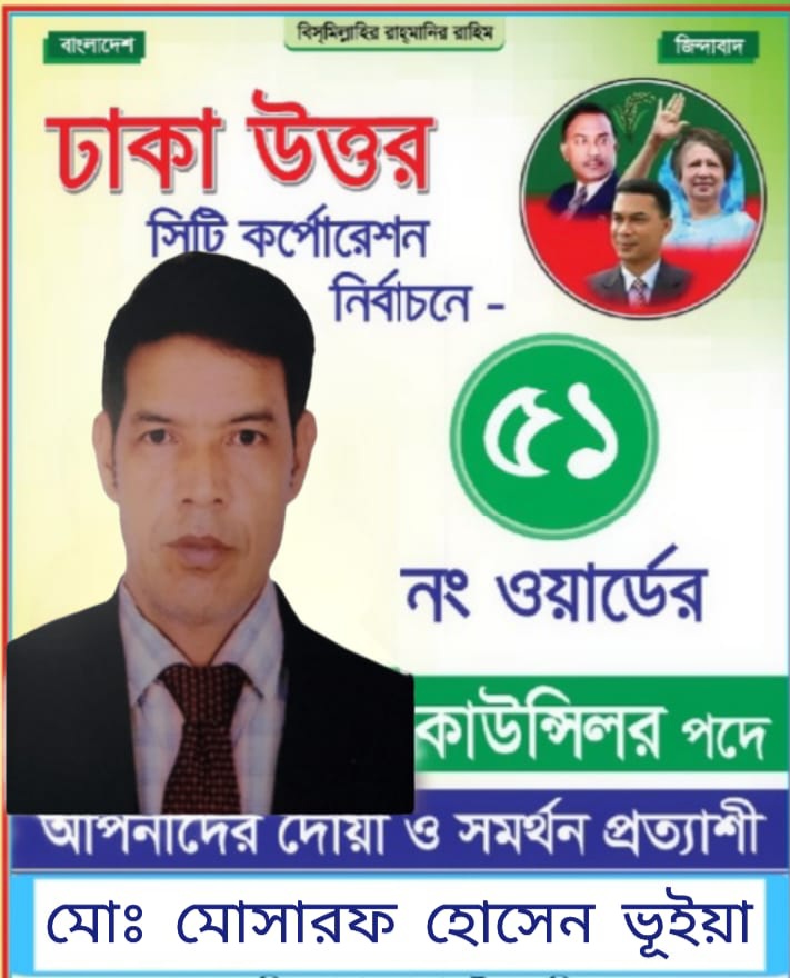 ৫১ নং ওয়ার্ডে জনপ্রত্যাশা: কাউন্সিলর হিসেবে মোসারেফ হোসেন ভুঁইয়াকে দেখতে চায় এলাকাবাসী (নিজস্ব প্রতিবেদক):